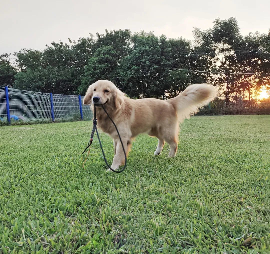 铲屎官遛狗的时候要用牵绳,防止狗狗乱跑的时候容易发生故哟。建议遛狗时间规律:早晚各一次哟~