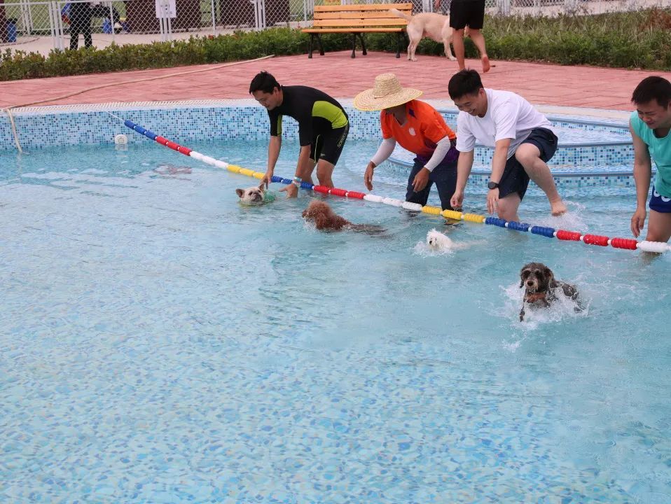 爱宠在出发哨声响后从起点游到终点,全场用时最短的前三名爱宠获奖。